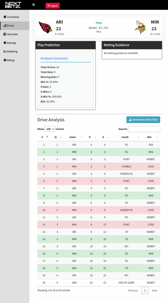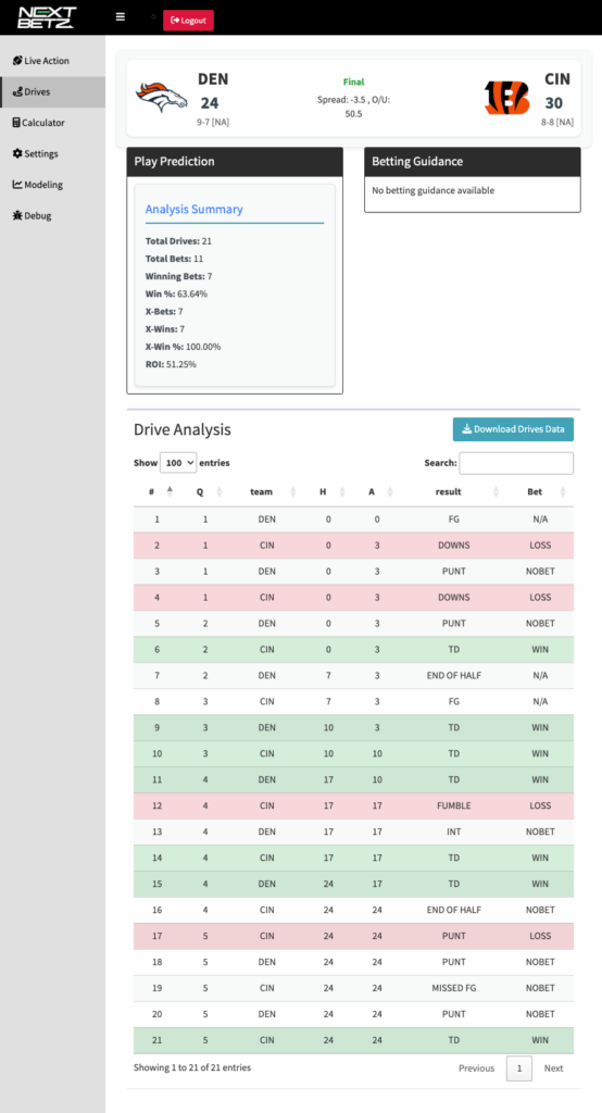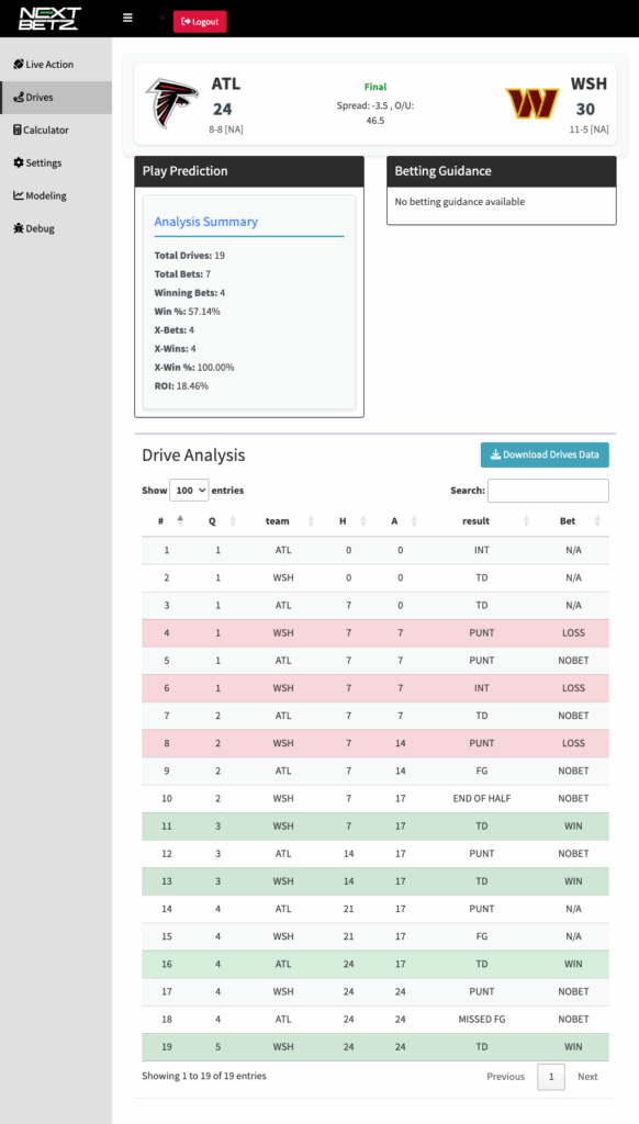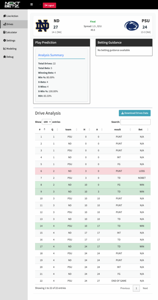 - NextBetz correctly called drive outcomes in game-winning moments across both NFL and NCAA