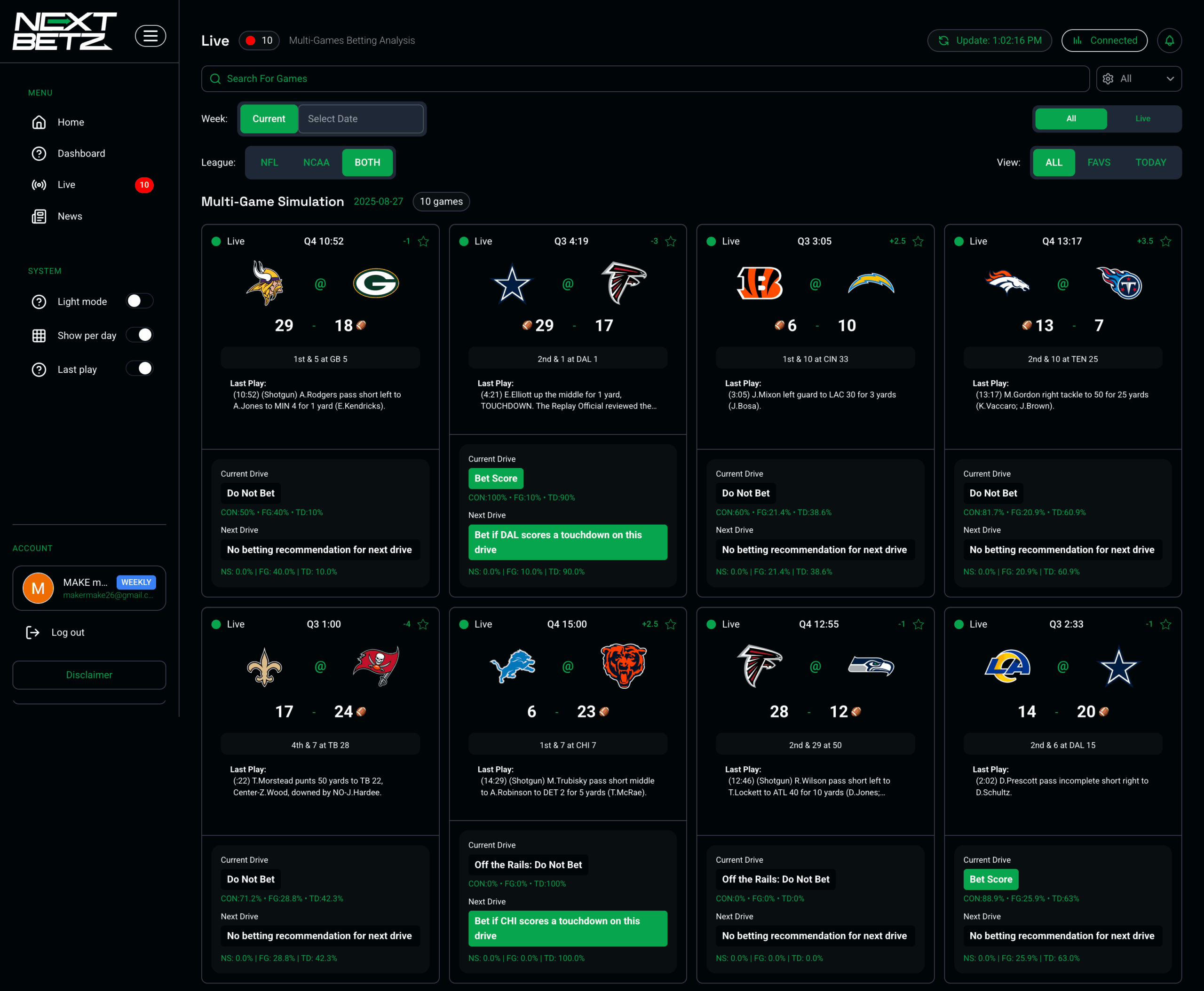 NextBetz is in BETA for a limited time. Register for free and dive into the future of live sports betting.